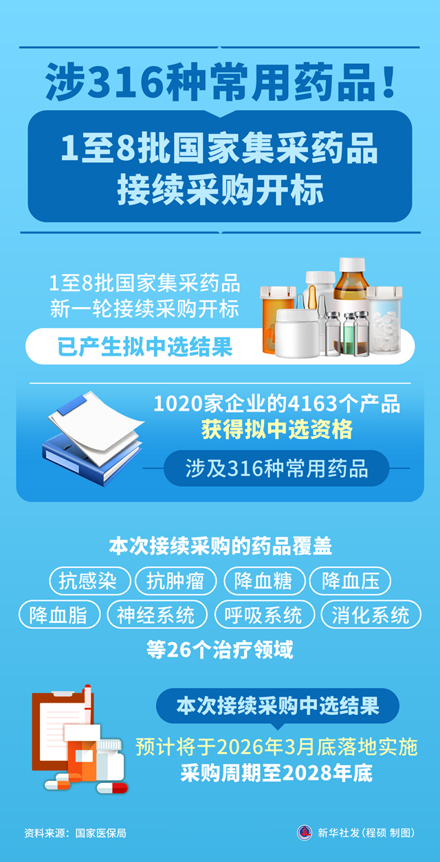 一图读懂 | 涉316种常用药品!1至8批国家集采药品接续采购开标