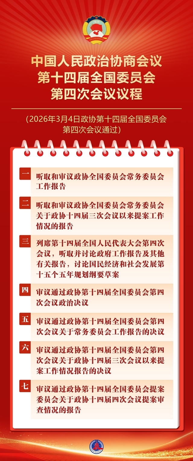 一图读懂 | 中国人民政治协商会议第十四届全国委员会第四次会议议程