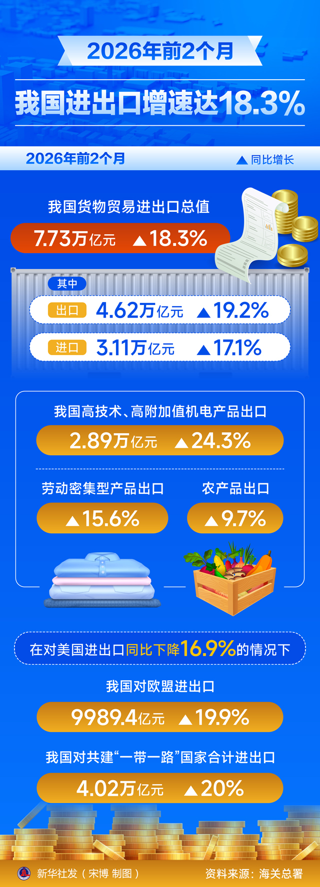 一图读懂 | 2026年前2个月我国进出口增速达18.3%