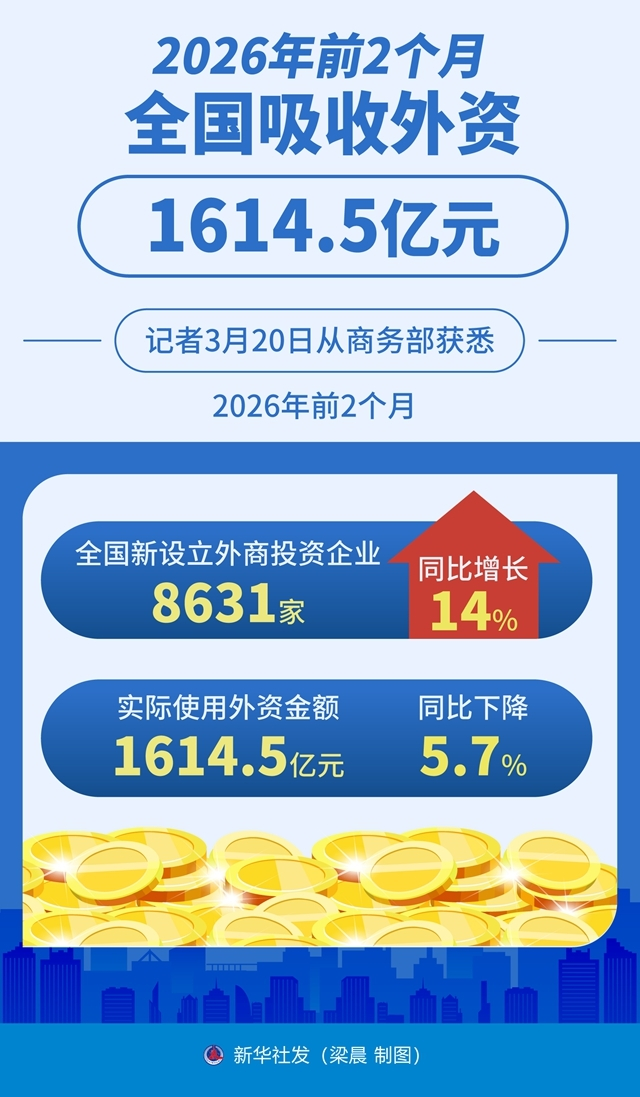 一图读懂 | 2026年前2个月全国吸收外资1614.5亿元