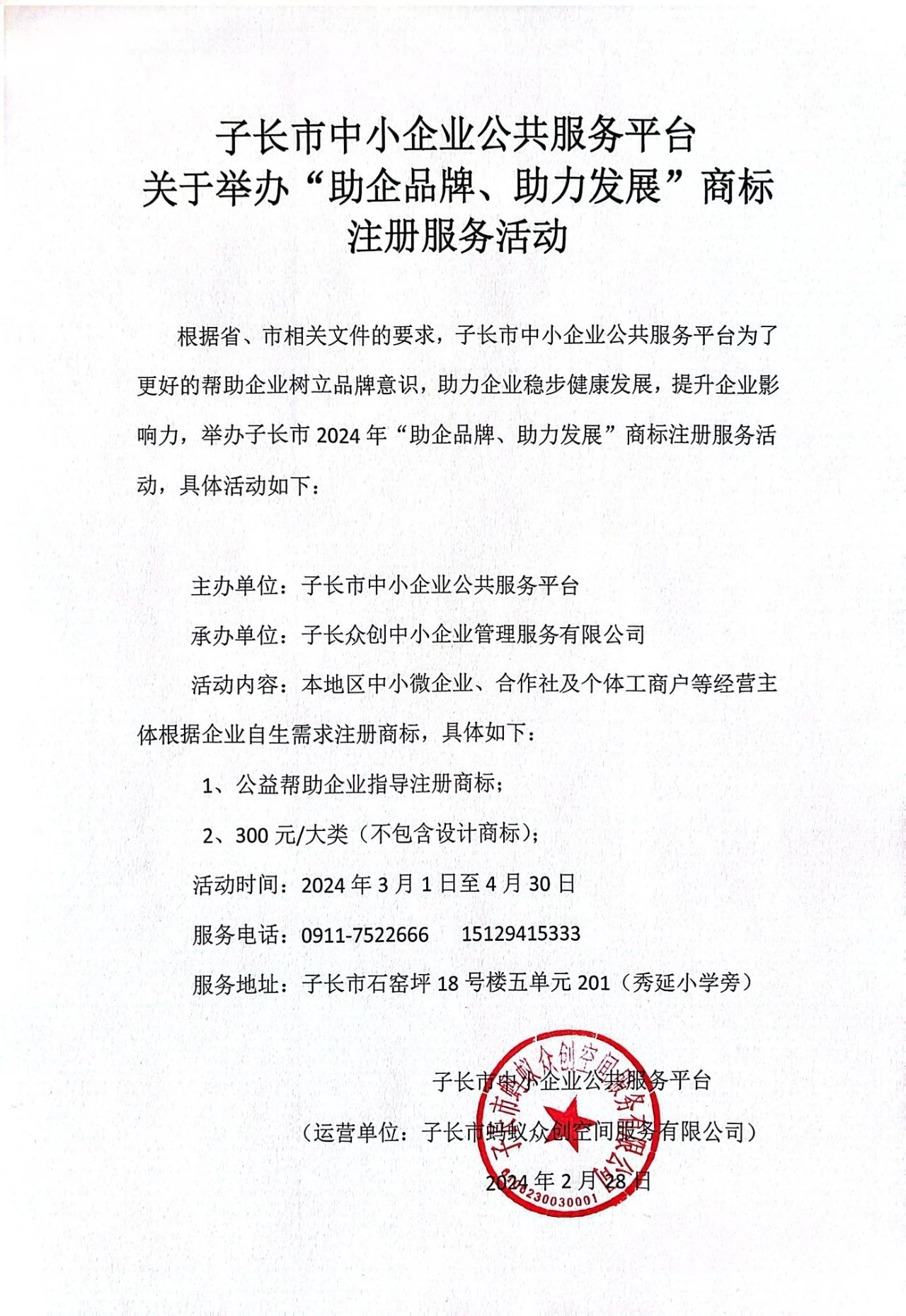 子长市中小企业公共服务平台关于举办“助企品牌、助力发展”商标注册服务活动
