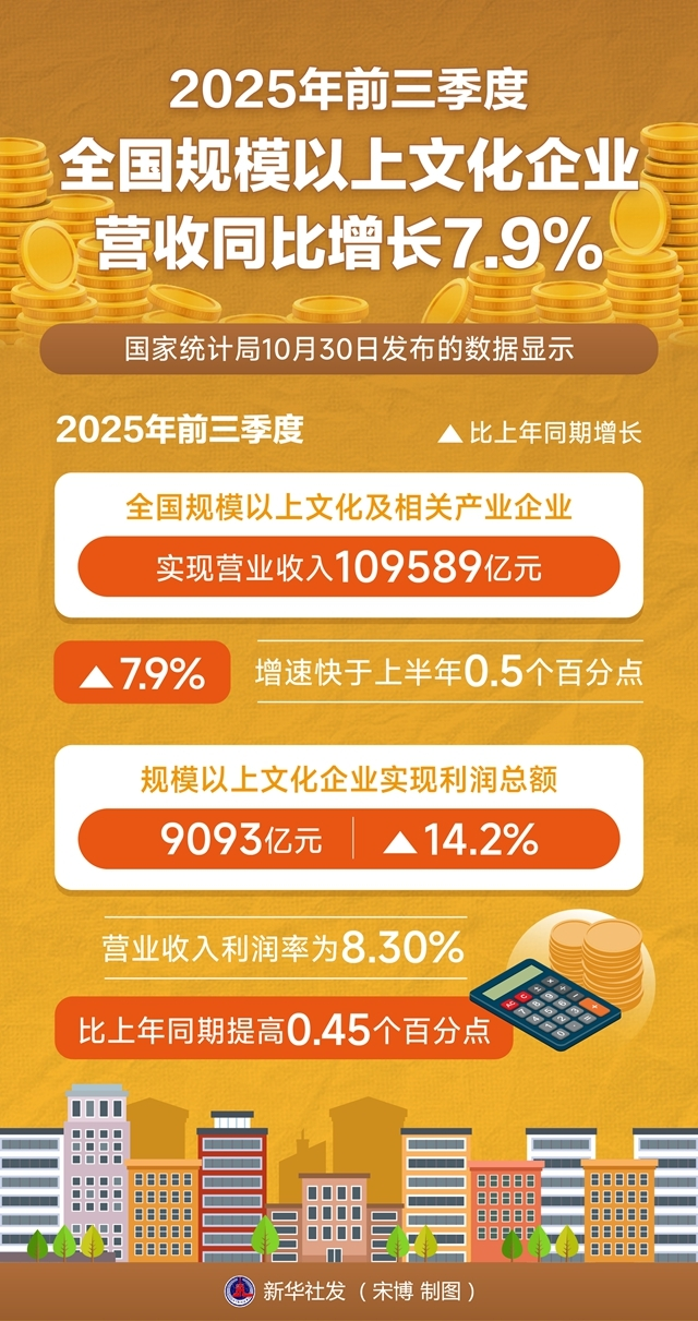 一图读懂 | 2025年前三季度全国规模以上文化企业营收同比增长7.9%
