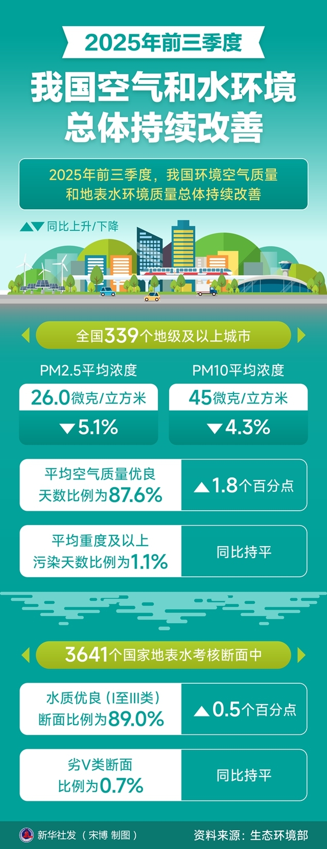 一图读懂 | 2025年前三季度我国空气和水环境总体持续改善
