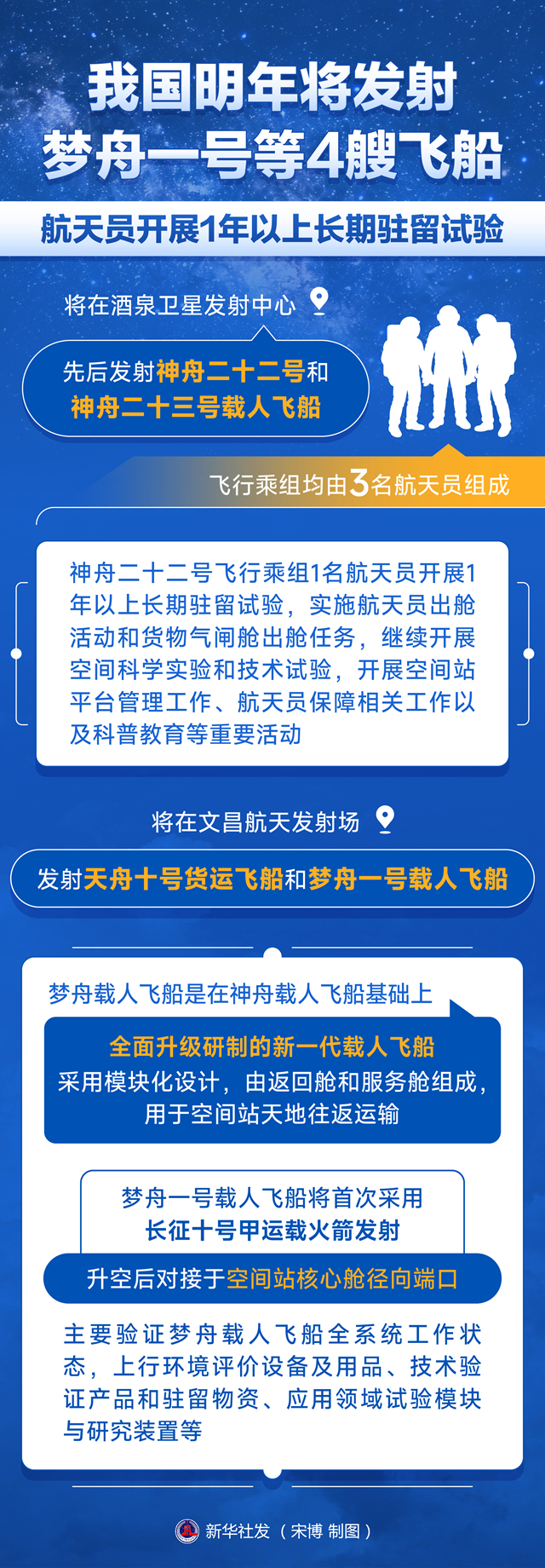一图读懂 | 我国明年将发射梦舟一号等4艘飞船 航天员开展1年以上长期驻留试验