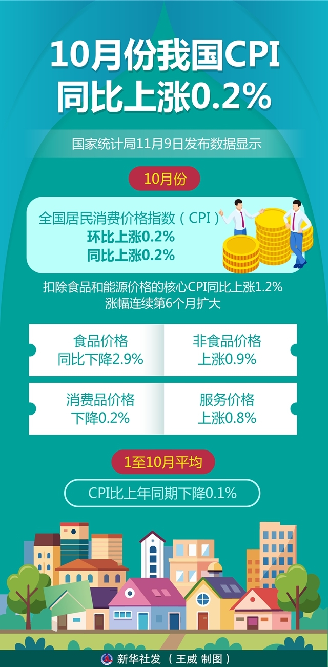 一图读懂 | 10月份我国CPI同比上涨0.2%