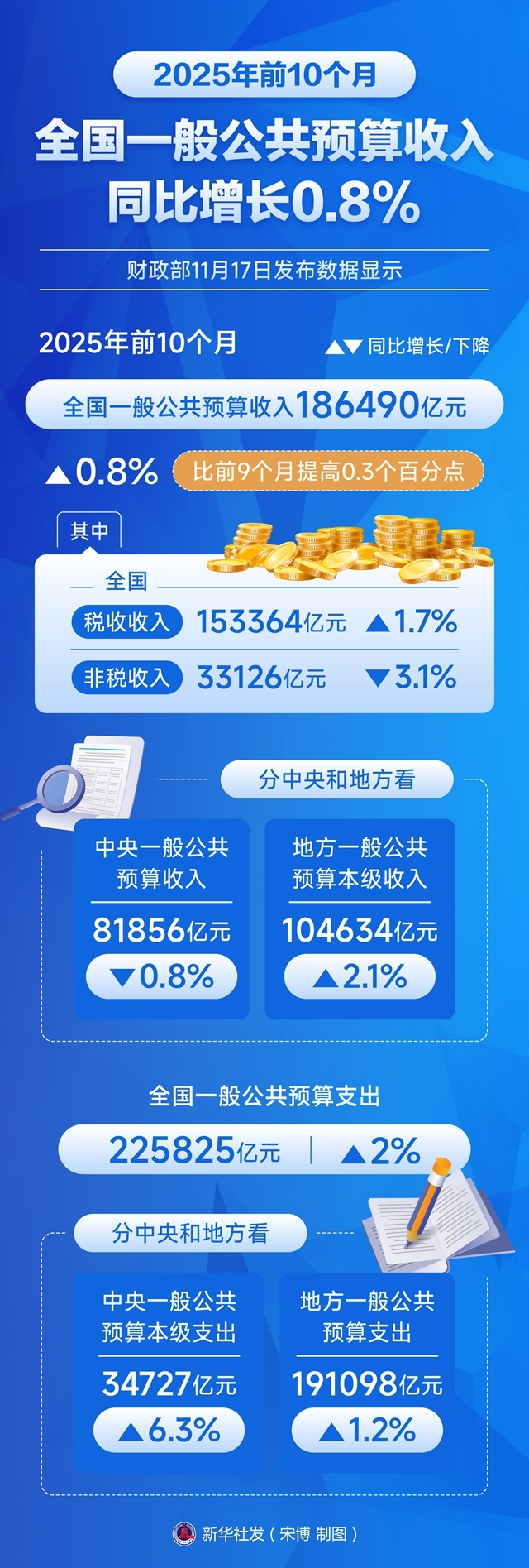 一图读懂 | 2025年前10个月全国一般公共预算收入同比增长0.8%