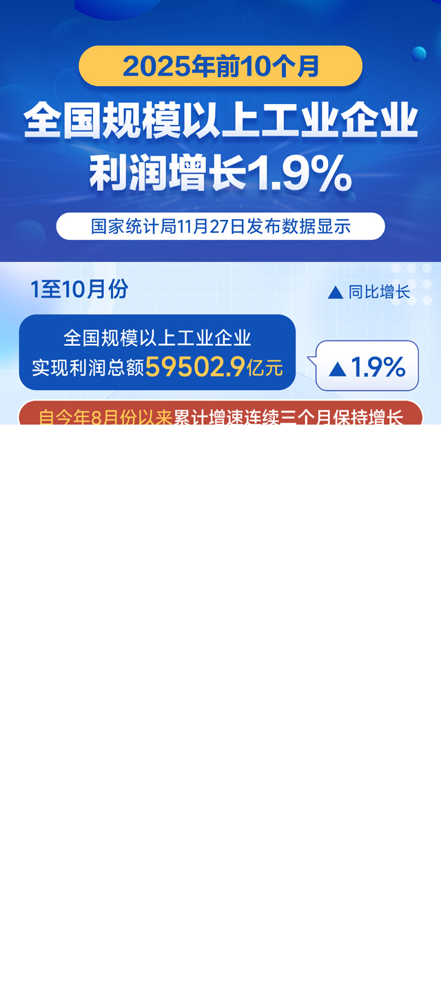 一图读懂 | 2025年前10个月全国规模以上工业企业利润增长1.9%